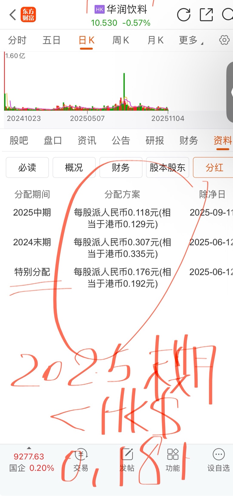 $华润饮料(HK|02460)$ 因为新品铺货急剧增加成本导致利润率大幅下滑,2025年末期分红后,年间股息率不可能高于2024年,因此姑息将退至年间0.3港币/股以下。给15倍市盈率,股价将是HK$4.5/Share,@王宜慕 你的投资风险极高!直说吧,将沉没。之后,你可以入列《沉默的荣耀》。良药苦口,你年过半百,要知好歹、懂进退。好好养老。