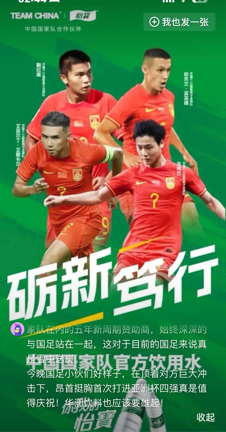 华润怡宝给中国男足加油!看一看,不吃海参鲍鱼只喝怡宝纯净水的年轻人是怎样炼成钢铁