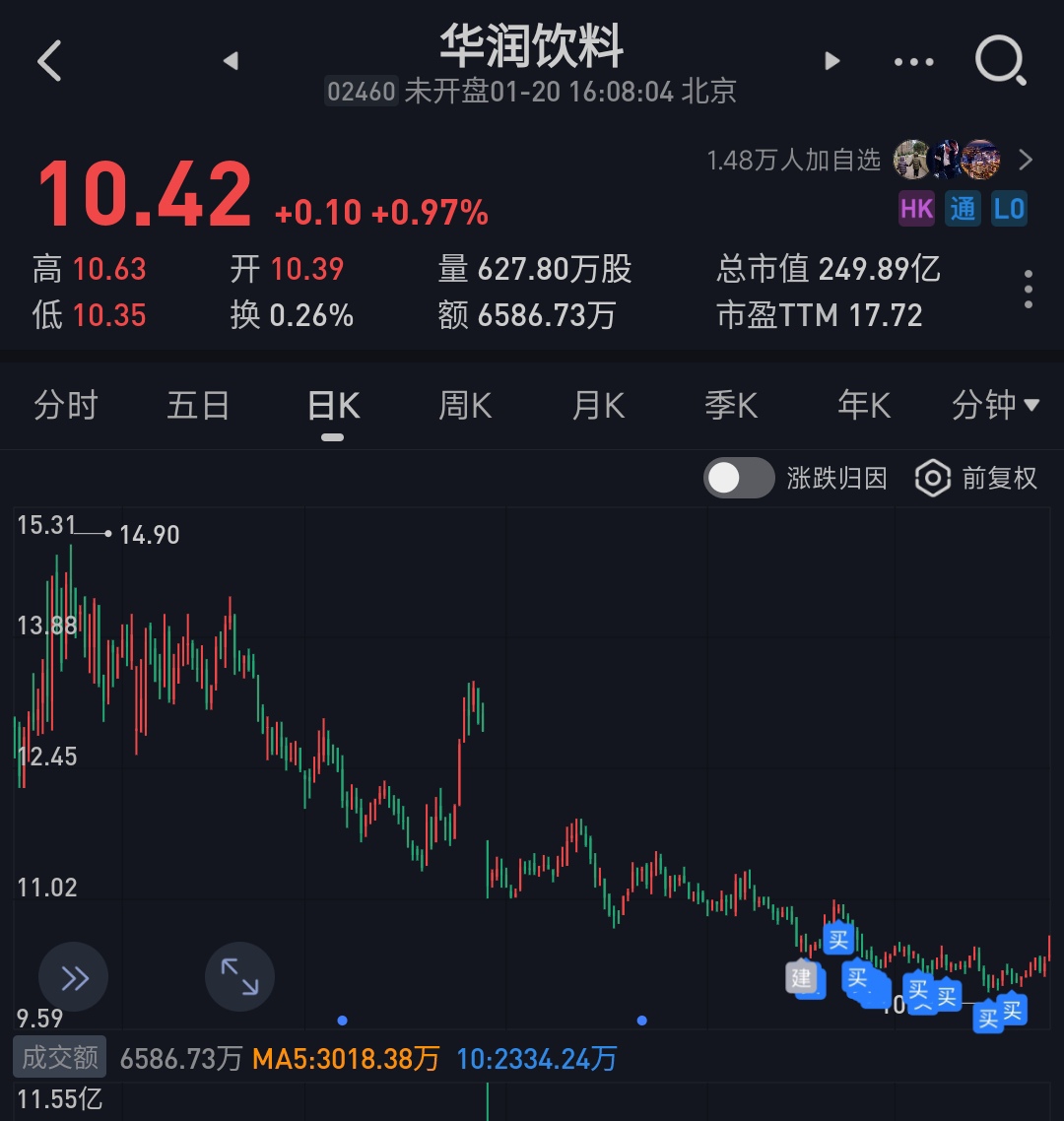 $华润饮料(HK|02460)$ 今天要庆祝一下吧,我先提前谢谢大家