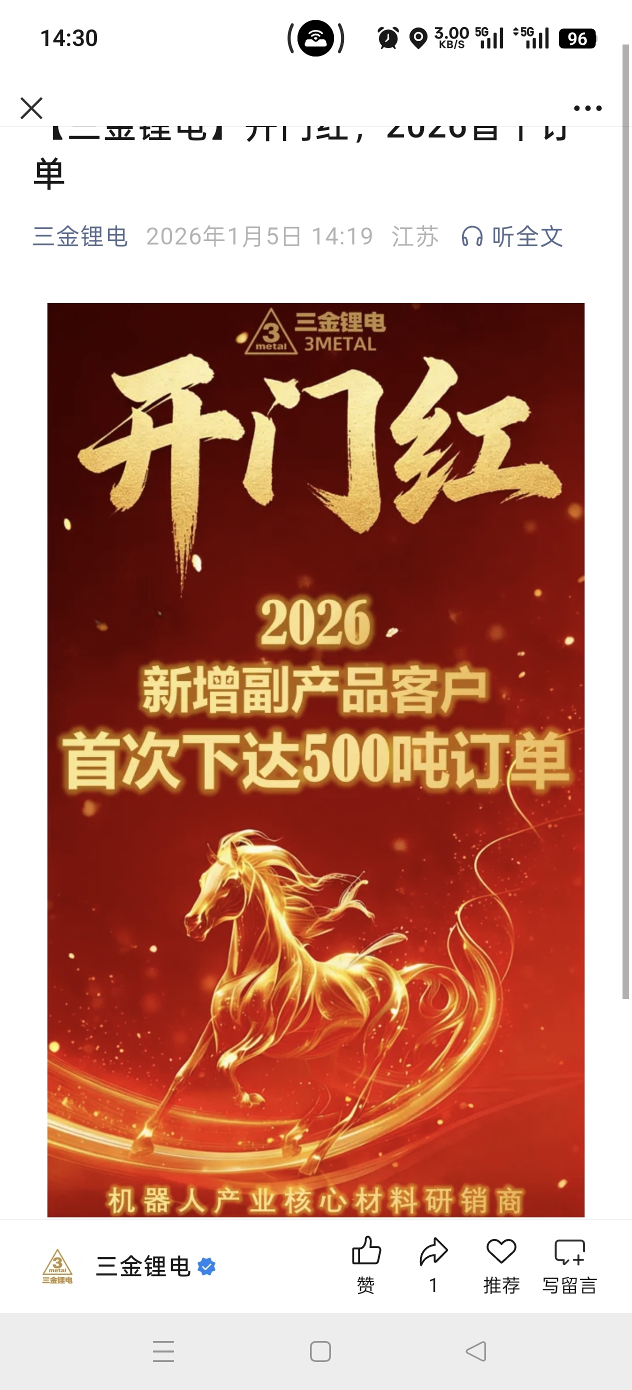 $龙蟠科技(HK|02465)$ 下属子公司三金锂电2026年开年收到宇树科技订单。