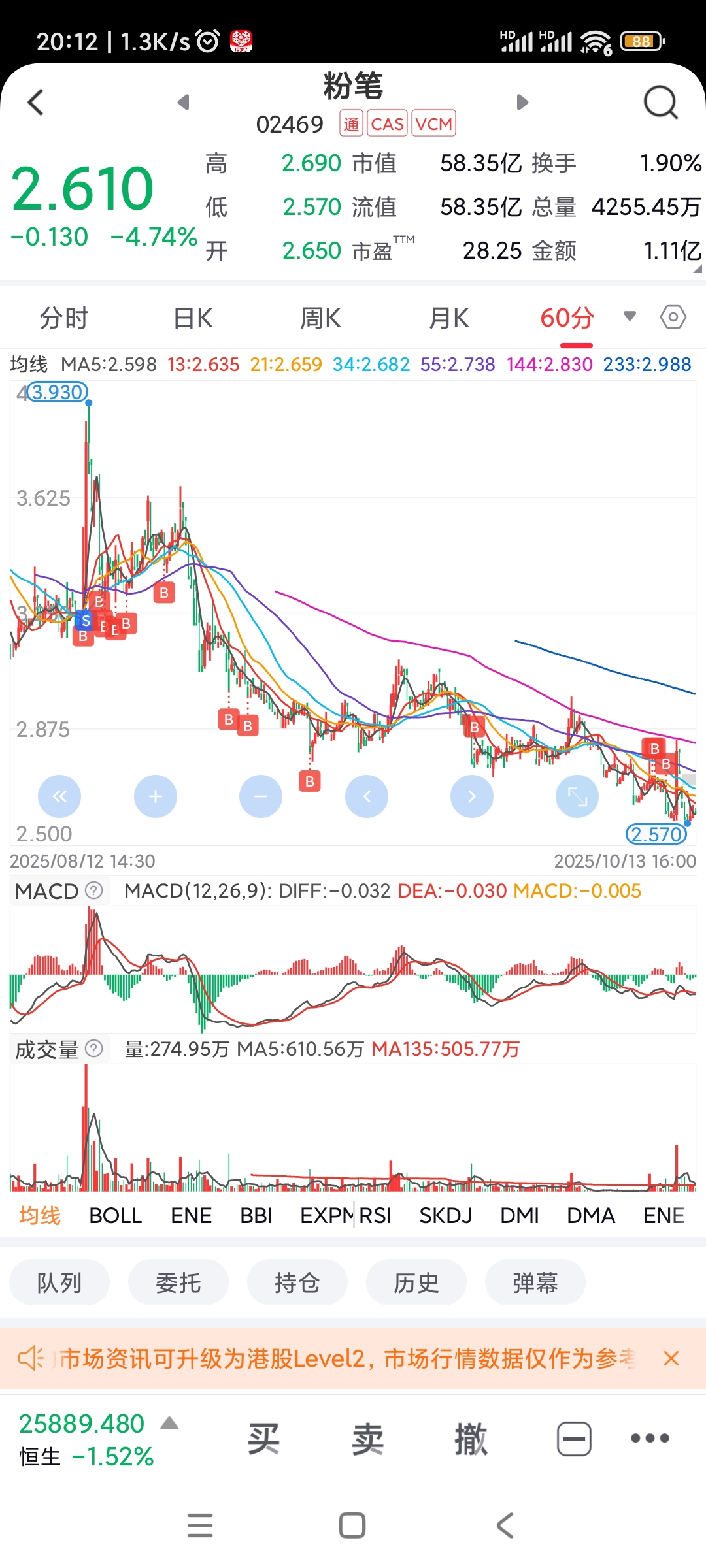 $粉笔(HK|02469)$ 从60分钟均线看,MACD底背离,即将上涨无疑