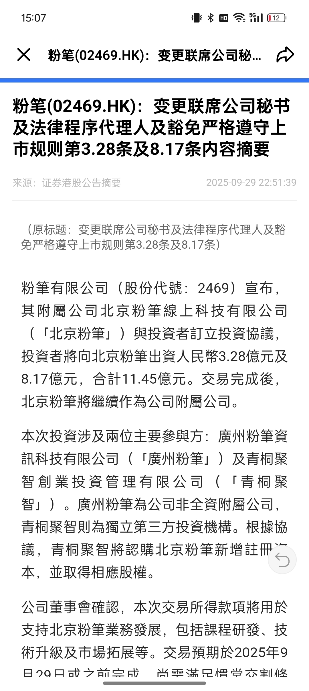 $粉笔(HK|02469)$ 这个消息在哪儿公告的?