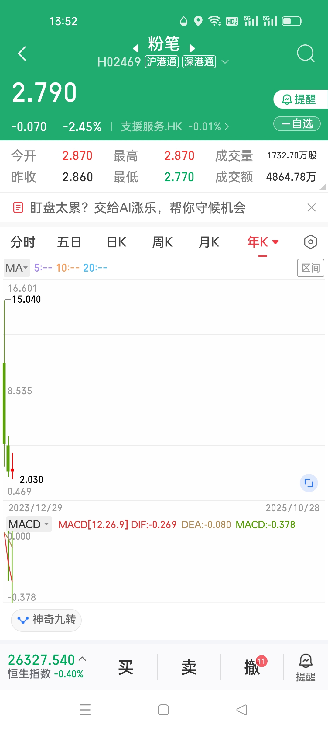 粉笔今年涨了8%,港股大盘涨了30%多