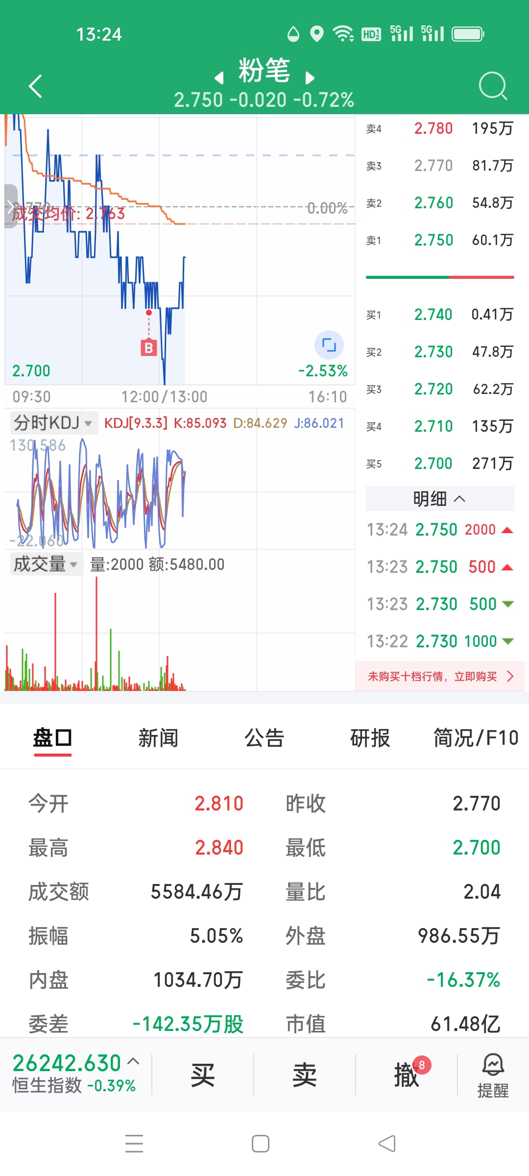 $粉笔(HK|02469)$ 哎,希望下午拉红