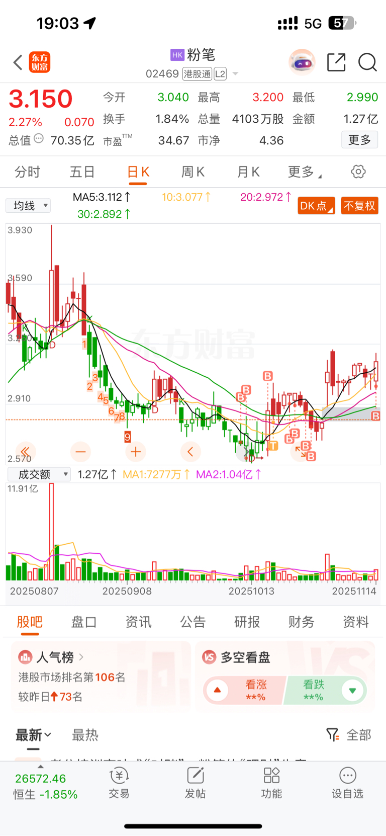 $粉笔(HK|02469)$ 周一预计15个百分点涨幅!