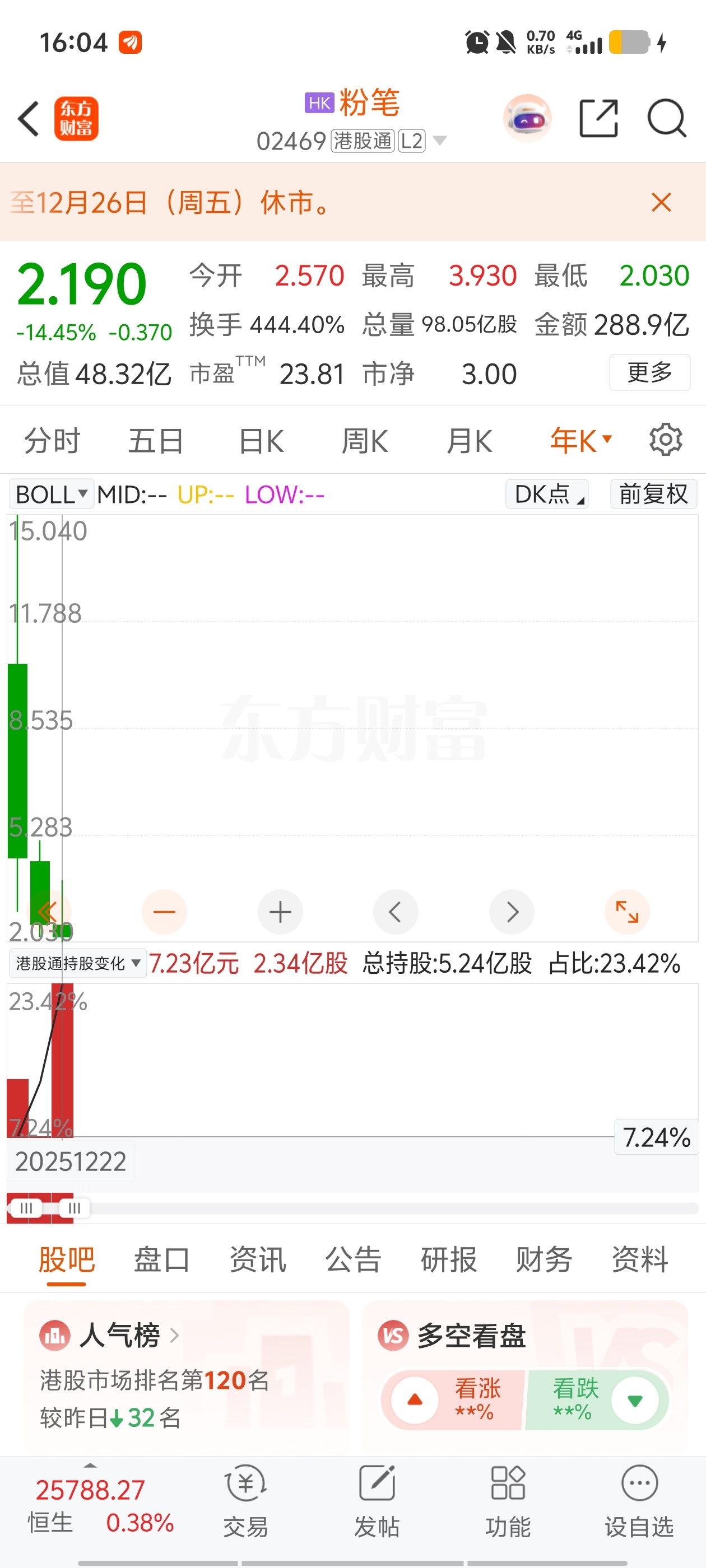 $粉笔(HK|02469)$ 张小龙谋财害命,你不出来叫增持回购,我就不会这么头铁 ,你个出生。害了这么多内地资金,港股通,你不会有好报的。