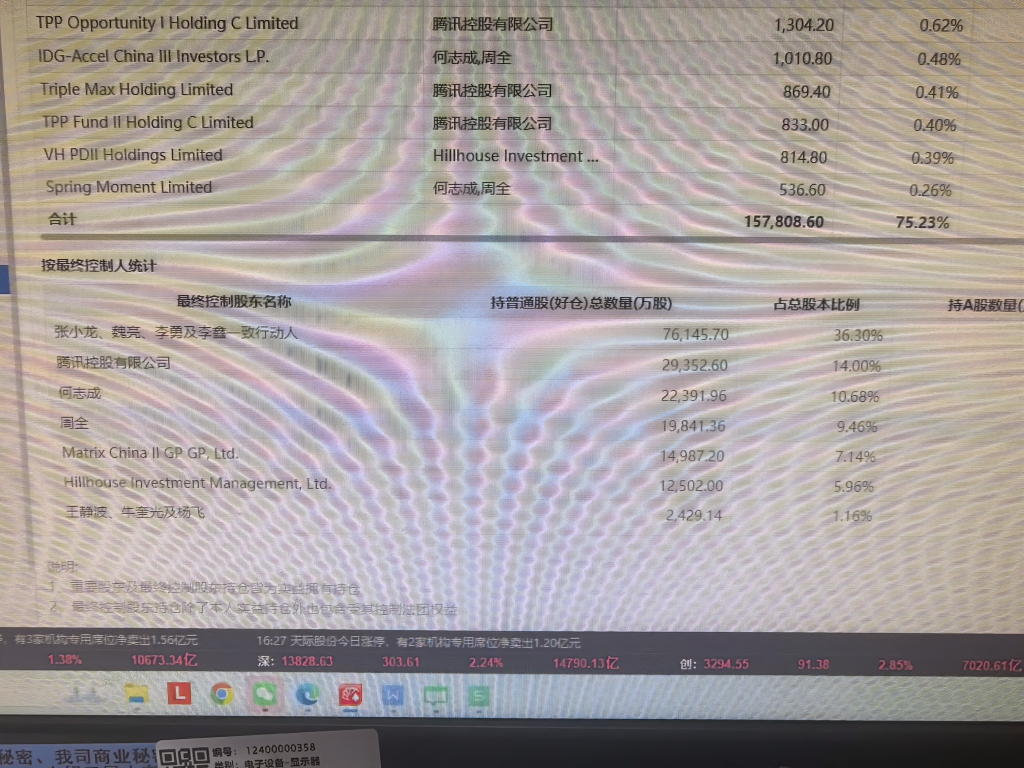 刚上市时候张小龙持股36%,现在24%,还有三分之二没卖呢,27午10月解禁,在
