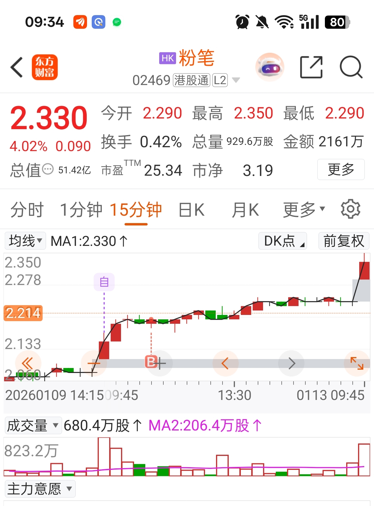 $粉笔(HK|02469)$ 感觉今天得8个点