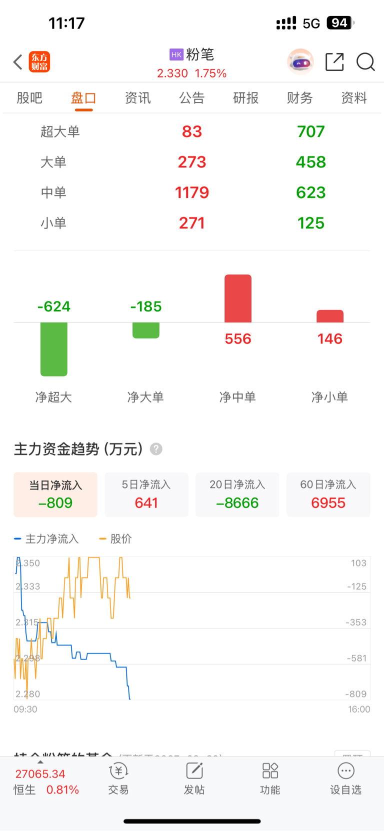 $粉笔(HK|02469)$ 这股好不了了,主力持续流出