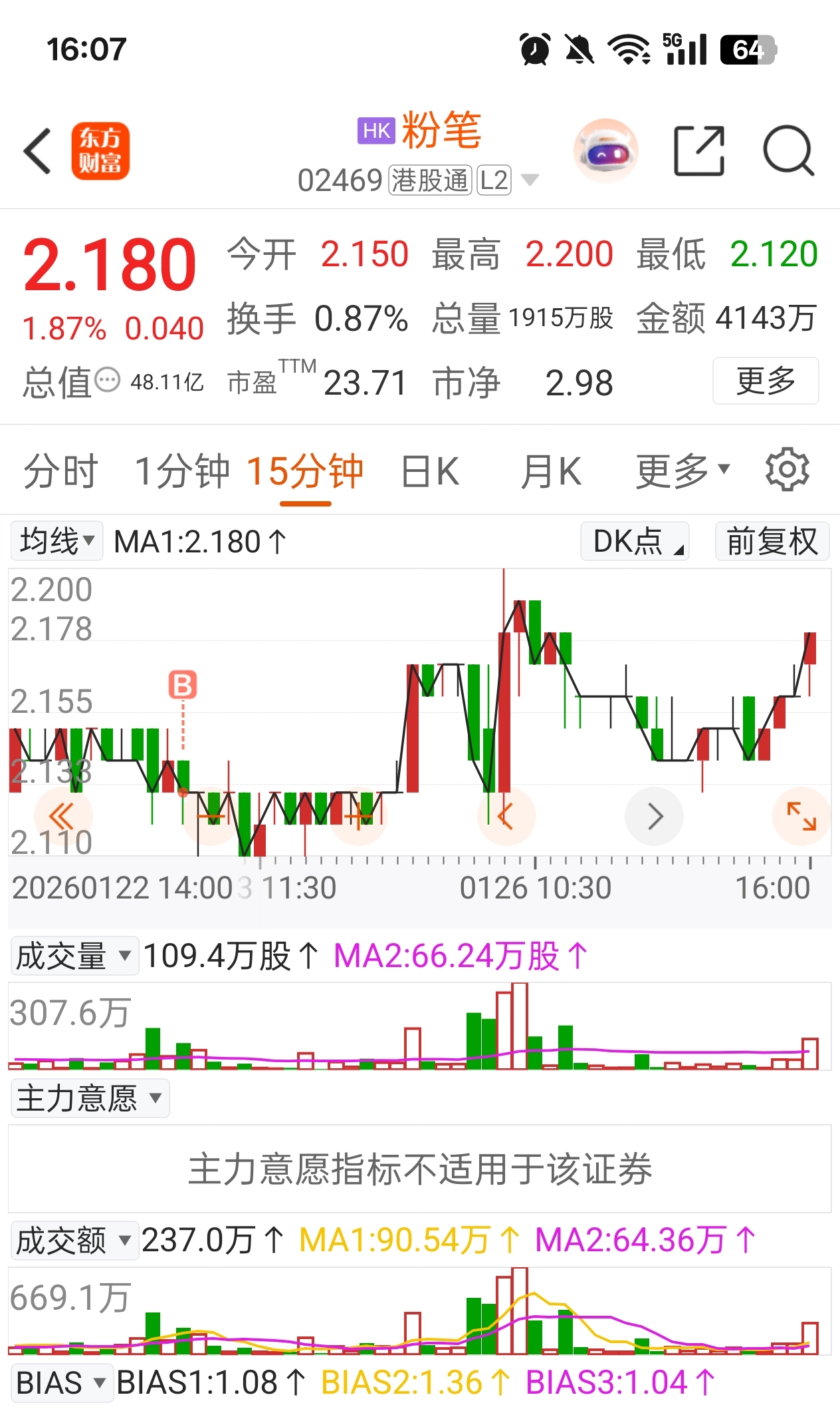 $粉笔(HK|02469)$ 主力控盘还挺强的,其他外资资本的主力呢?这港股指标太少了,不好判断,只能靠那微弱的盘感