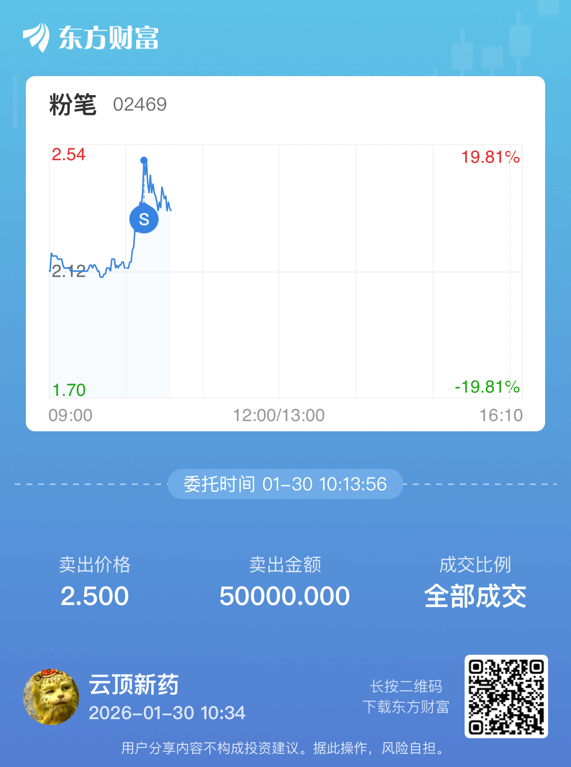 温馨提示: 1.根据《证券法》规定,禁止编造、传播虚假信息或者误导性信息,扰乱证券市场;2.用户在本社区发表的所有资料、言论等仅代表个人观点,与本网站立场无关,不对您构成任何投资建议。用户应基于自己的独立判断,自行决定证券投资并承担相应风险。《东方财富社区管理规定》
