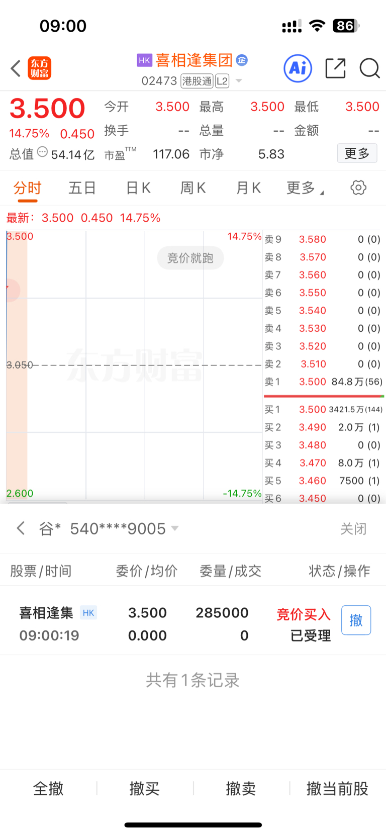 $喜相逢集团(HK|02473)$ 贡献28.5万手托单诱多!