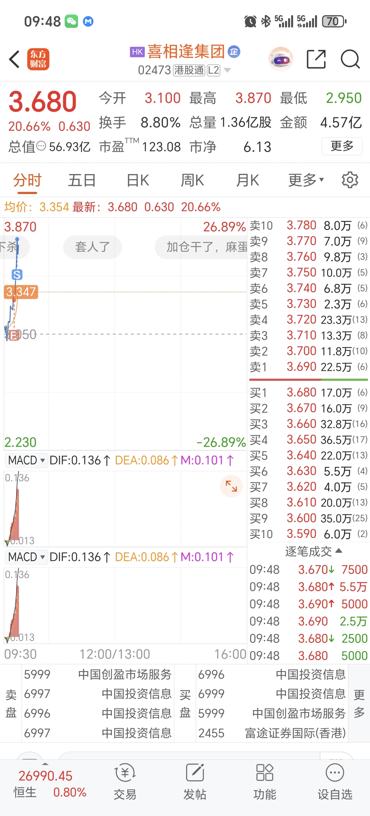 $喜相逢集团(HK|02473)$ 吃了13个点左右,我的认知只配我赚一点