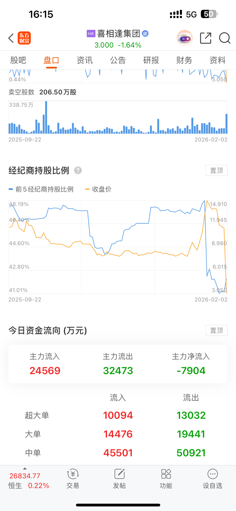 $喜相逢集团(HK|02473)$ 机构不知道消息?他们能这么精准卖掉?