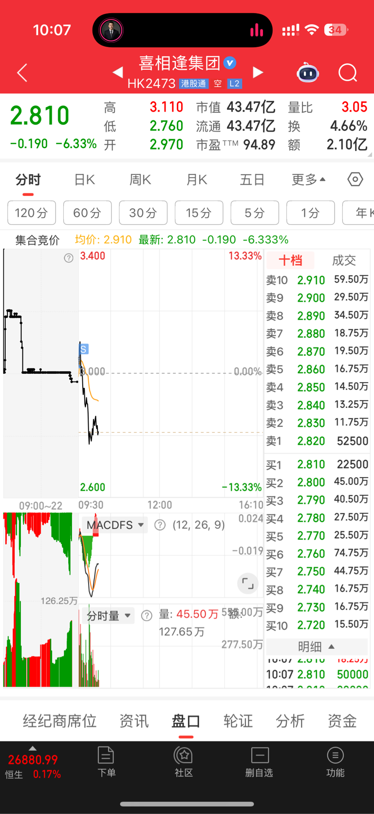 $喜相逢集团(HK|02473)$ 情况不对 就得走