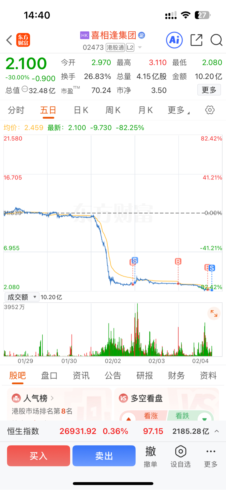 $喜相逢集团(HK|02473)$ 被老千股坑死了,我的人生全完了!