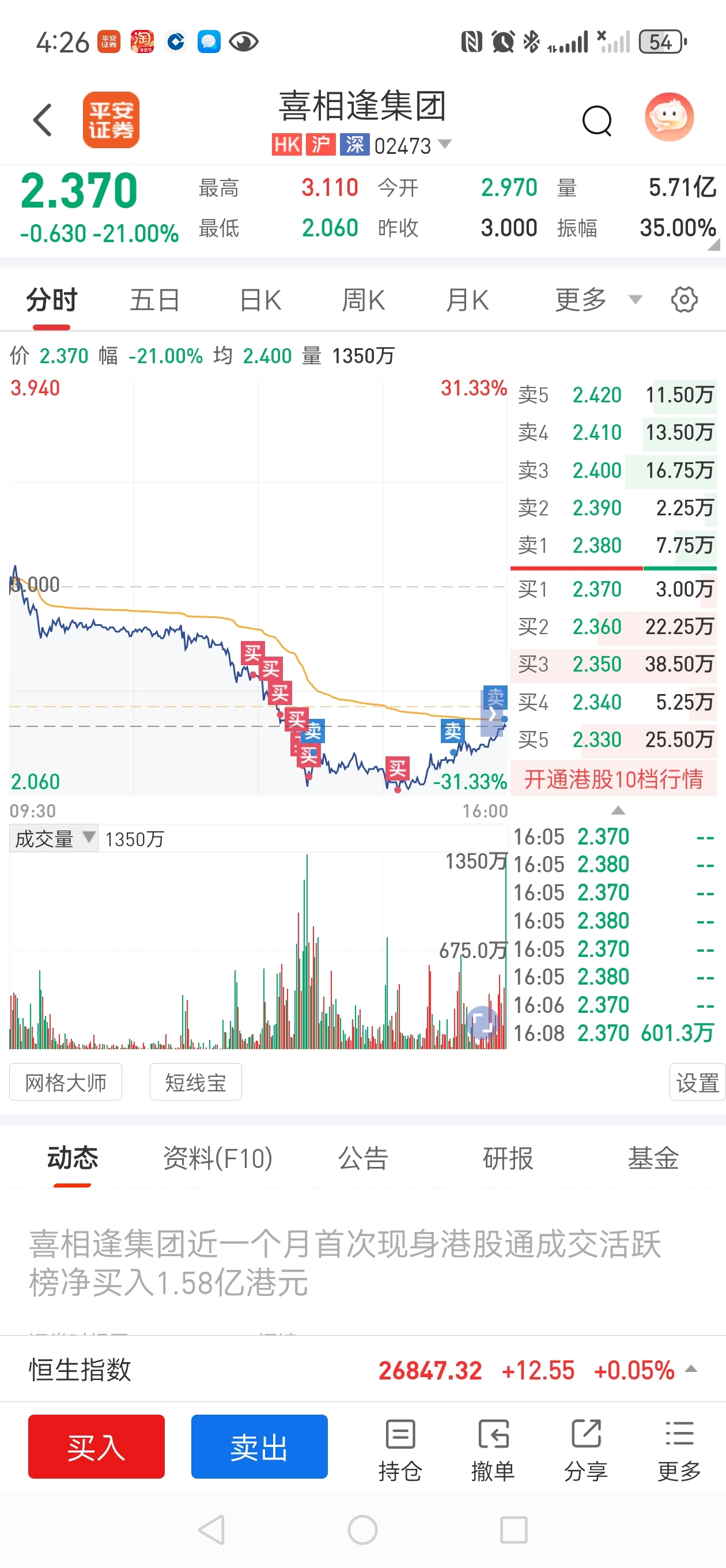 $喜相逢集团(HK|02473)$ 买早了,虽然后面有补回但是不挣钱阿,郁闷