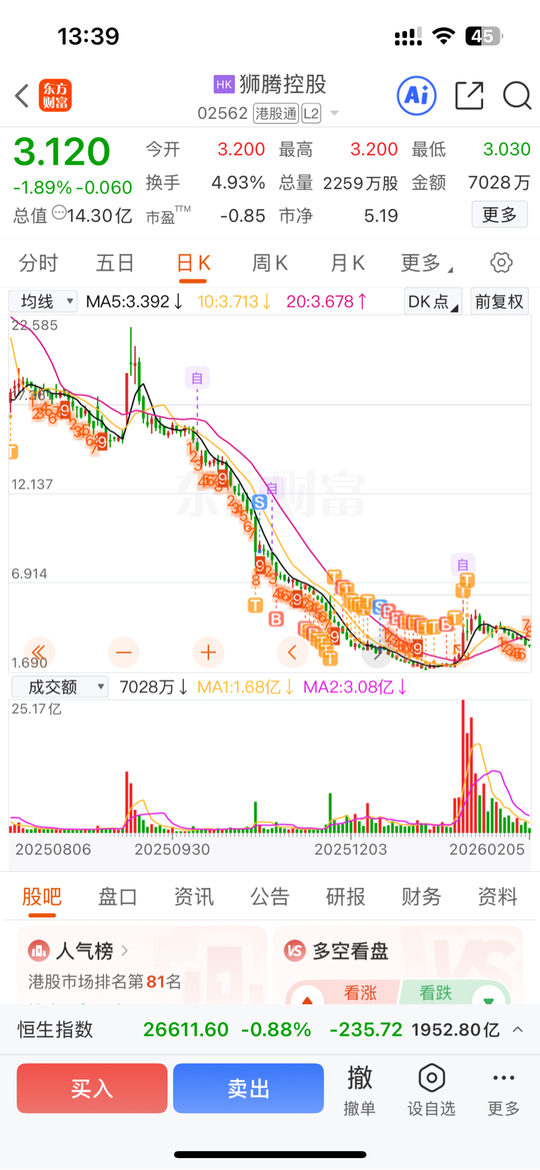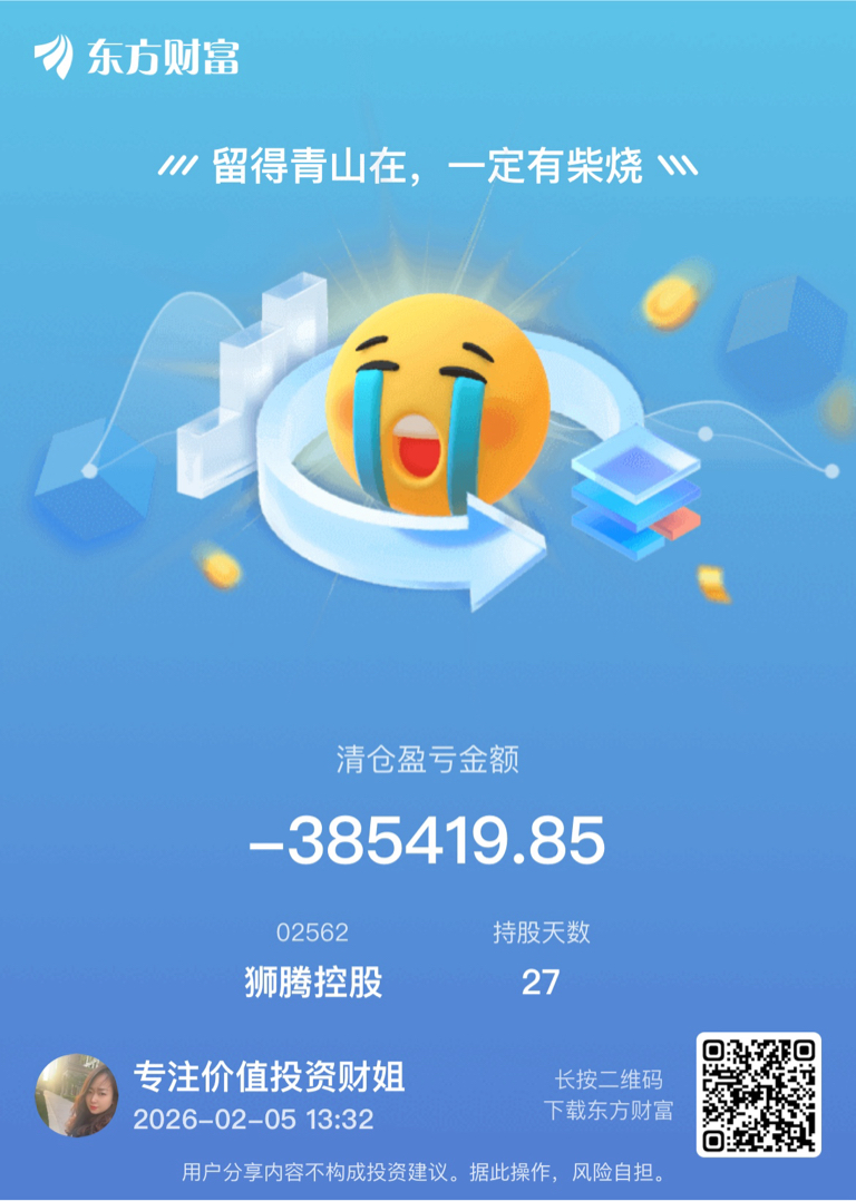 昊天抄底亏了53万,狮腾抄底亏了38万!