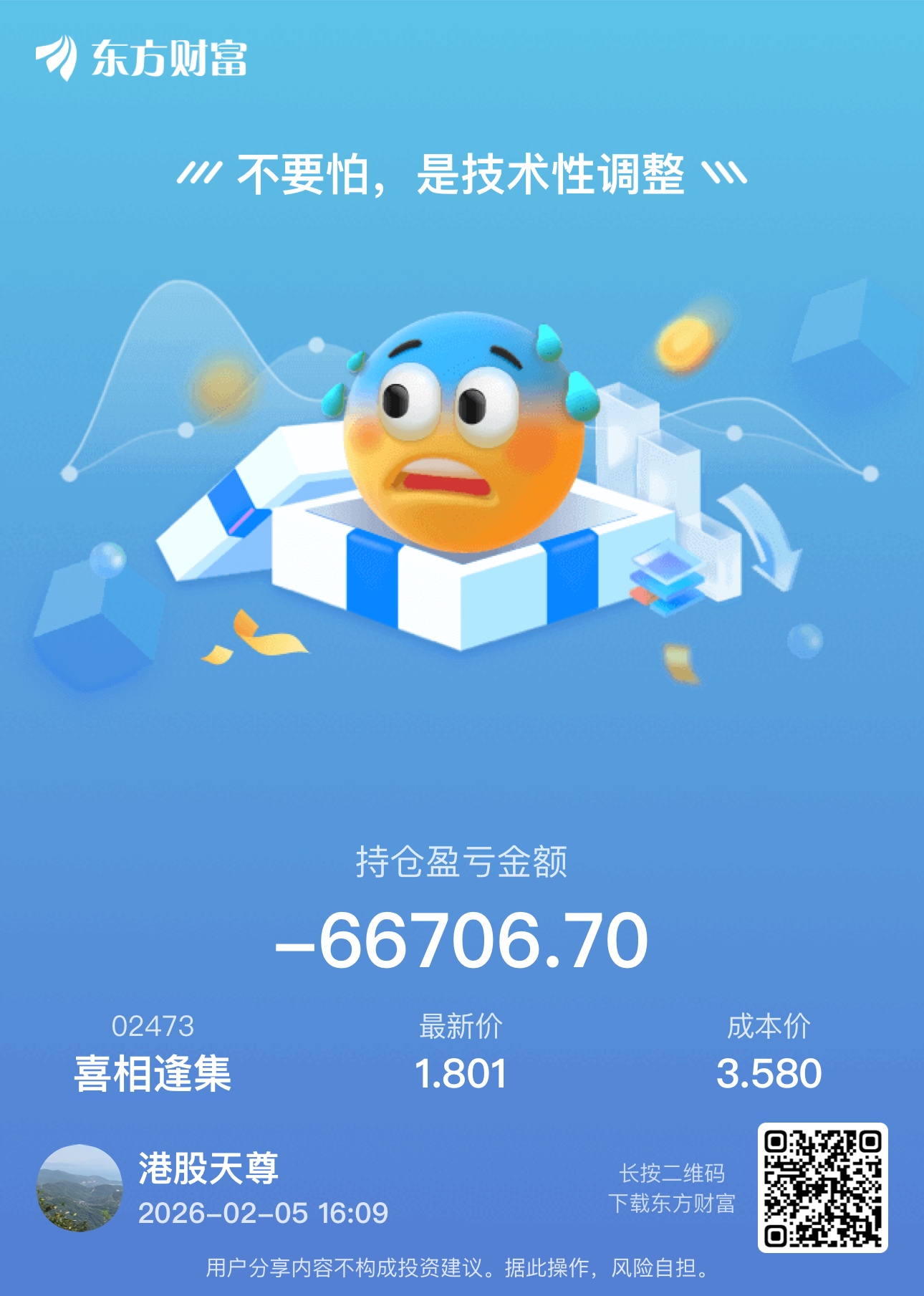 $喜相逢集团(HK|02473)$ 亏了50个点