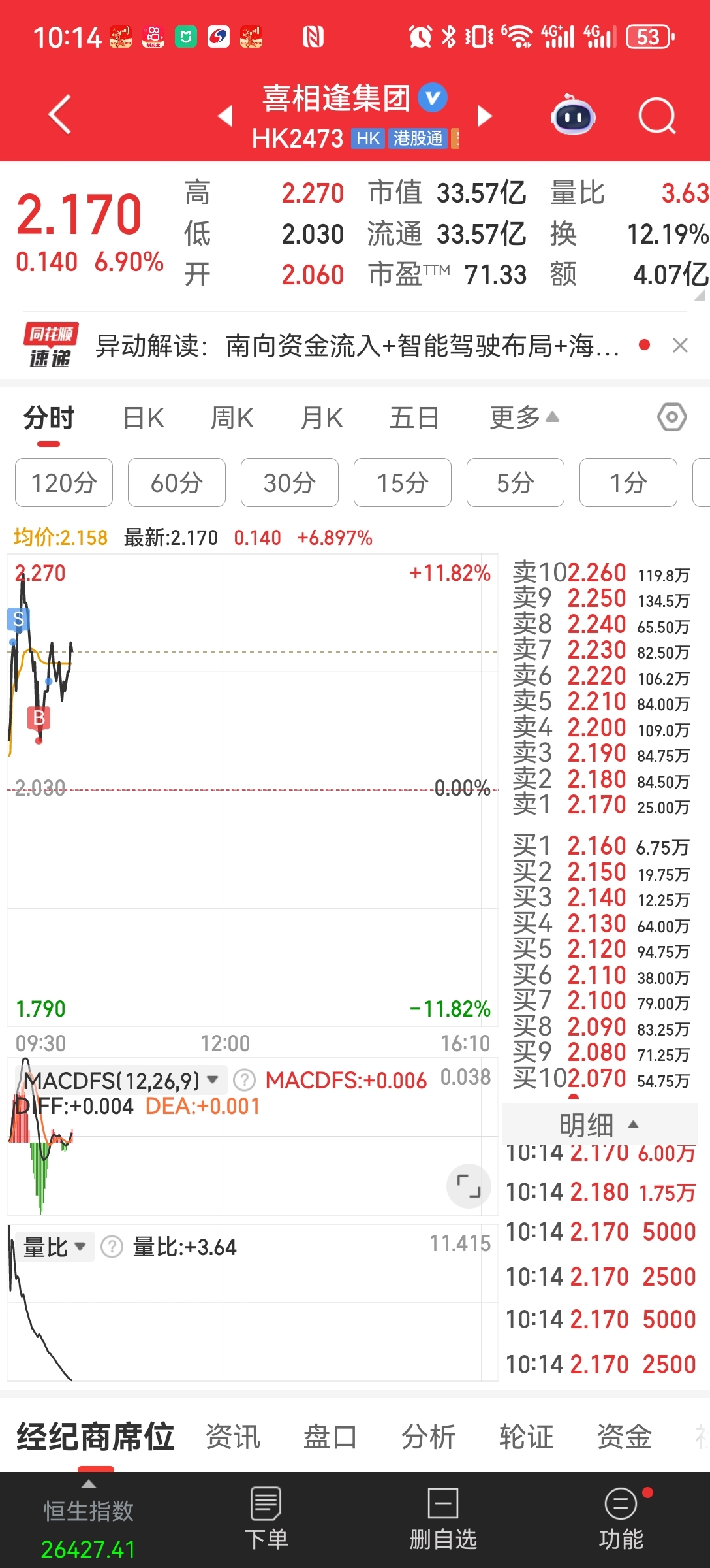 $喜相逢集团(HK|02473)$ 挂零轴佛性接,今天两次都没卖在高位,兄弟们理解力太强了