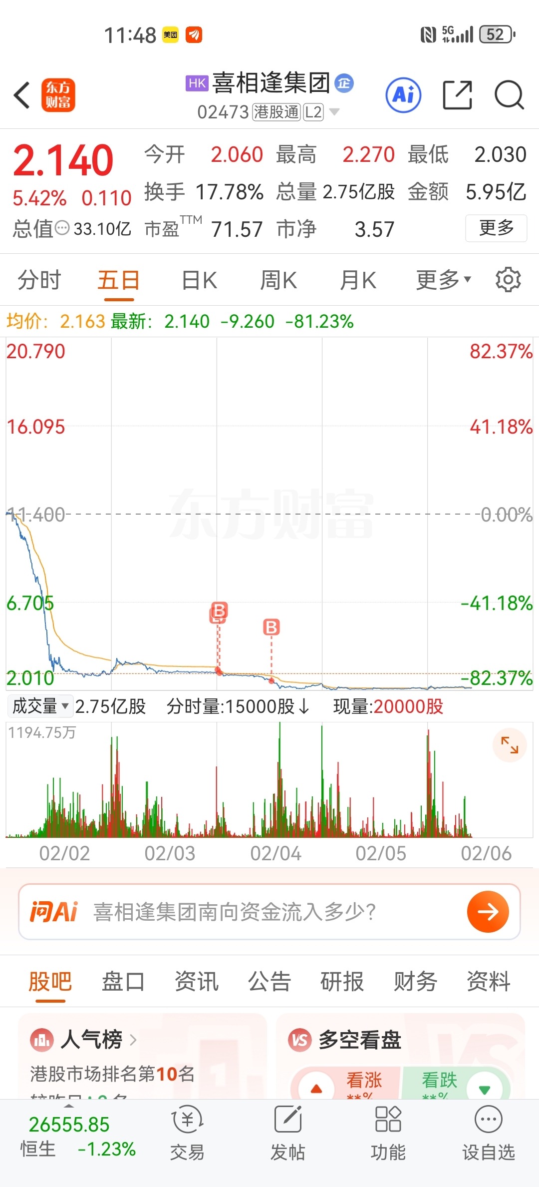 $喜相逢集团(HK|02473)$ 本想着抄底 没想到是无底洞 套的高高的