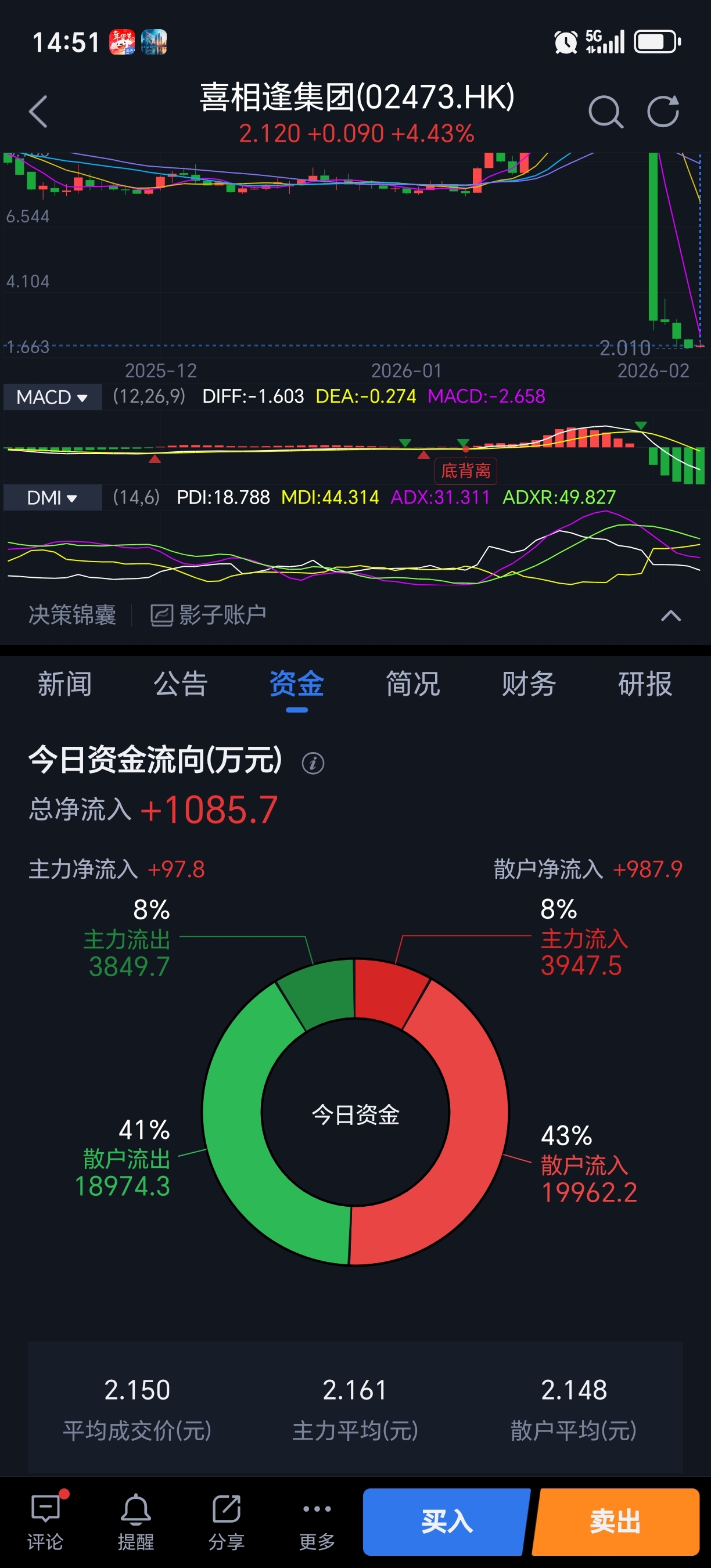 $喜相逢集团(HK|02473)$ 家人们非常优秀,刚才2.10直接拉倒2.14