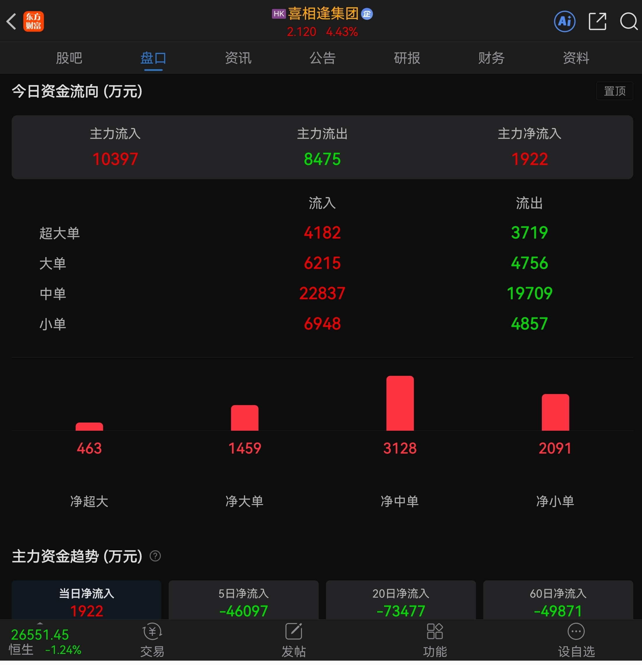 $喜相逢集团(HK|02473)$ 我不忽悠股友们,我目前找不到继续跌的理由,应该起稳回升了,下周大涨或暴涨,未来三天回到5元不敢说,未来50天回到5元大有希望,大家拿稳