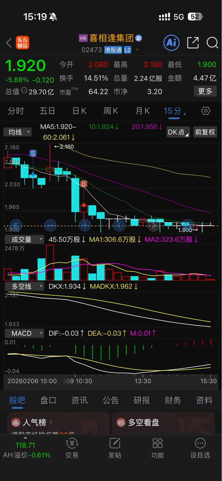$喜相逢集团(HK|02473)$ 等走出上升趋势,再补仓吧,现在补很危险。