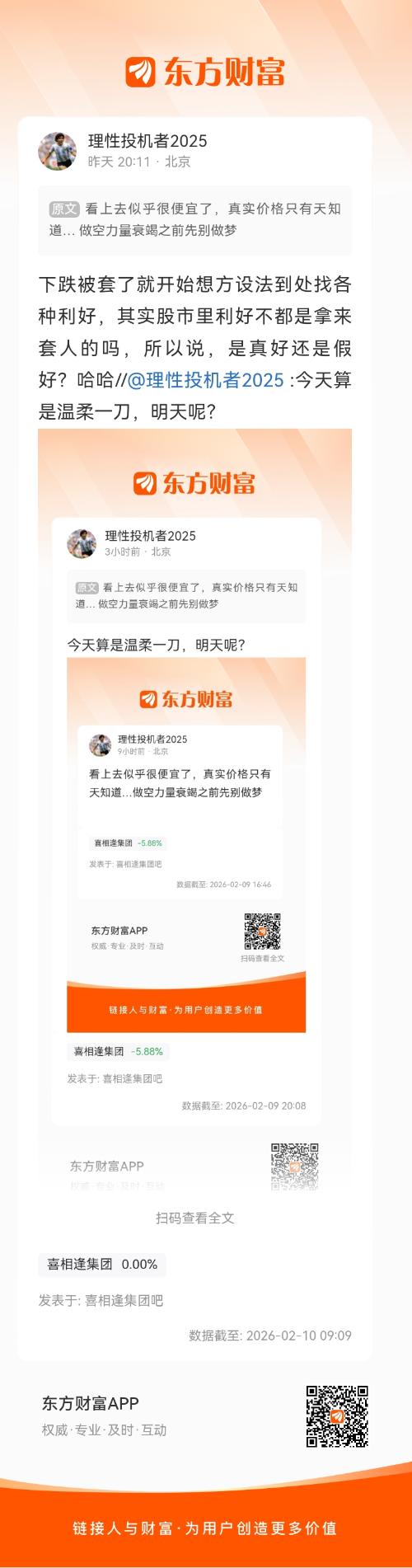 今天最好平开或小幅低开//@理性投机者2025 :下跌被套了就开始想方设法到处找各种利好,其实股市里利好不都是拿来套人的吗,所以说,是真好还是假好?哈哈//@理性投机者2025 :今天算是温柔一刀,明天呢?