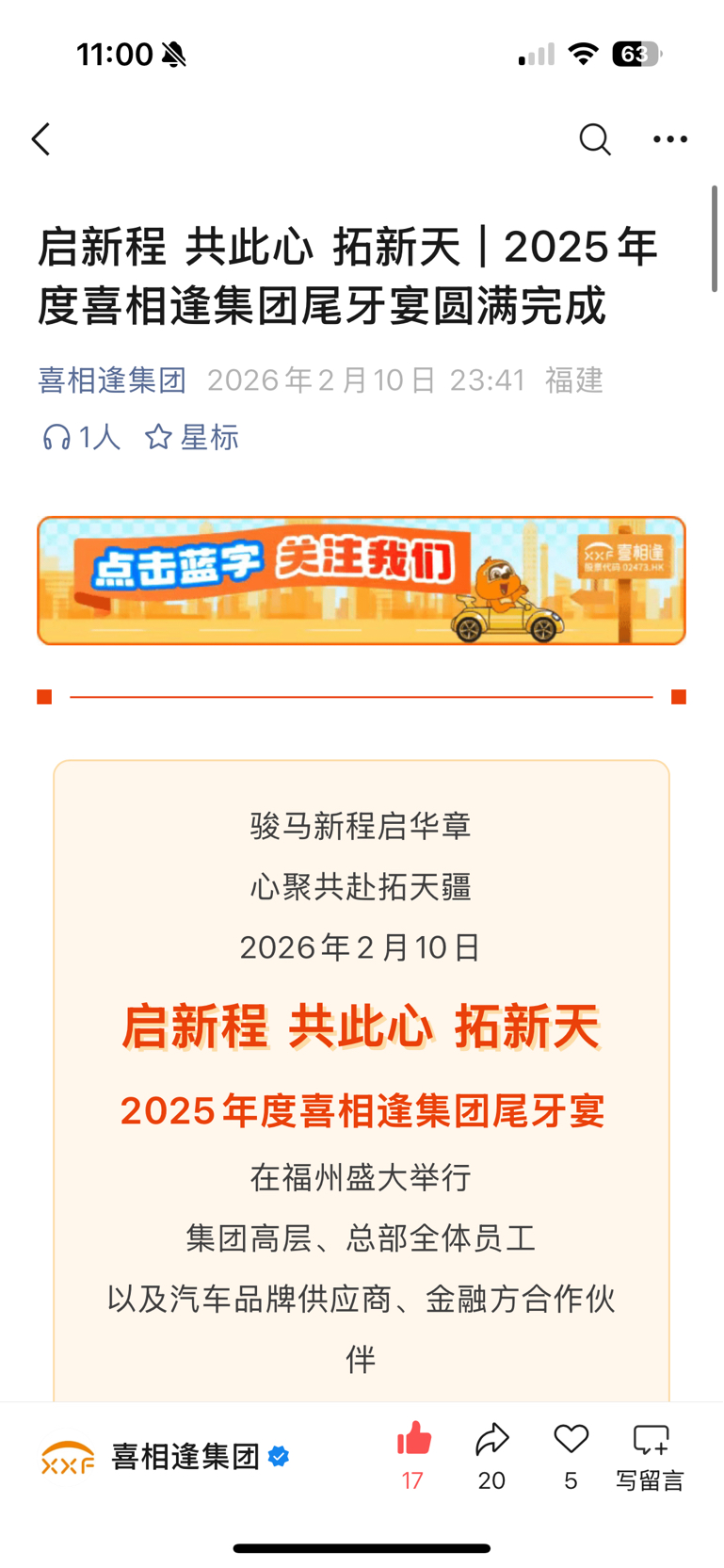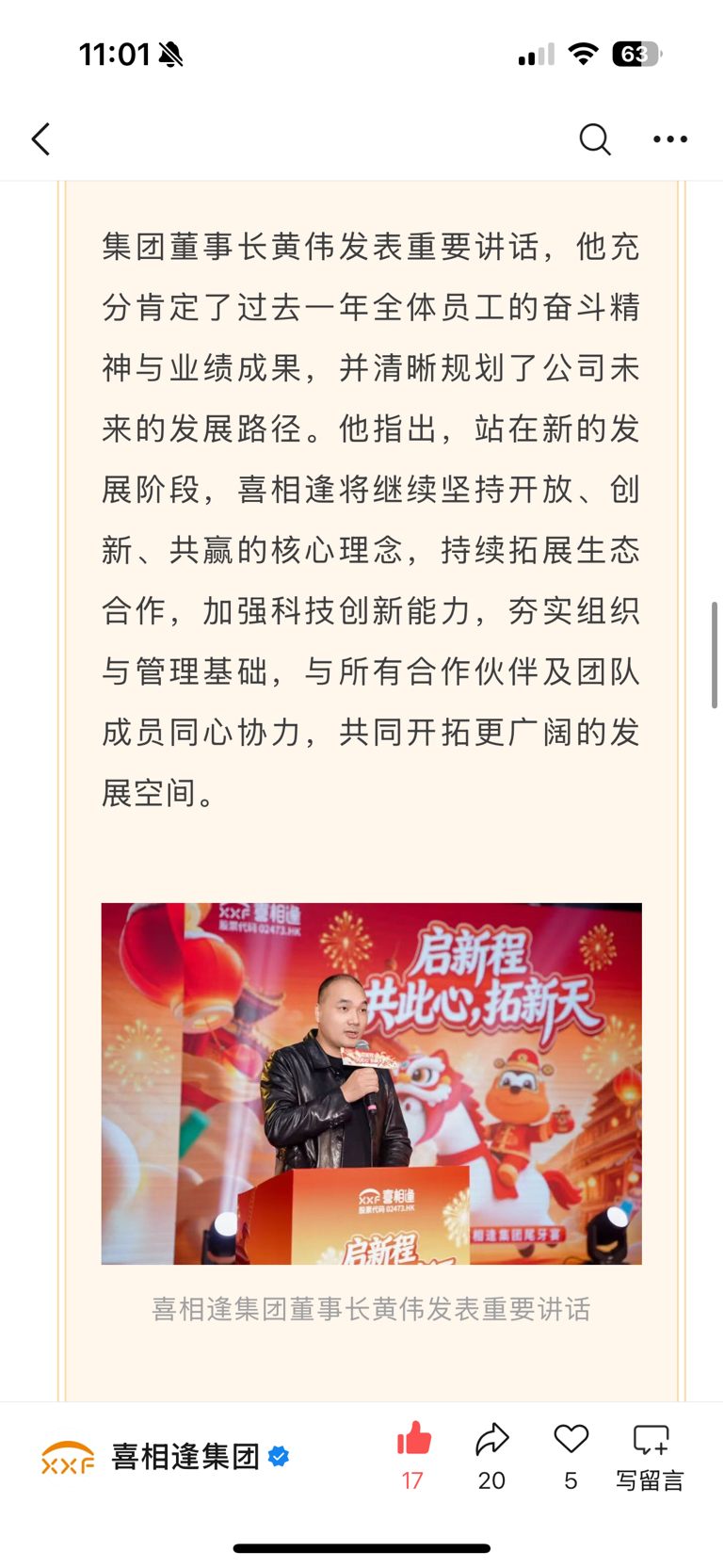 2026年2月10日,喜相逢集团举办了2025年度尾牙宴,董事长黄伟有露面,还给员工颁发了优秀员工奖等奖项:目前迹象表明运营正常