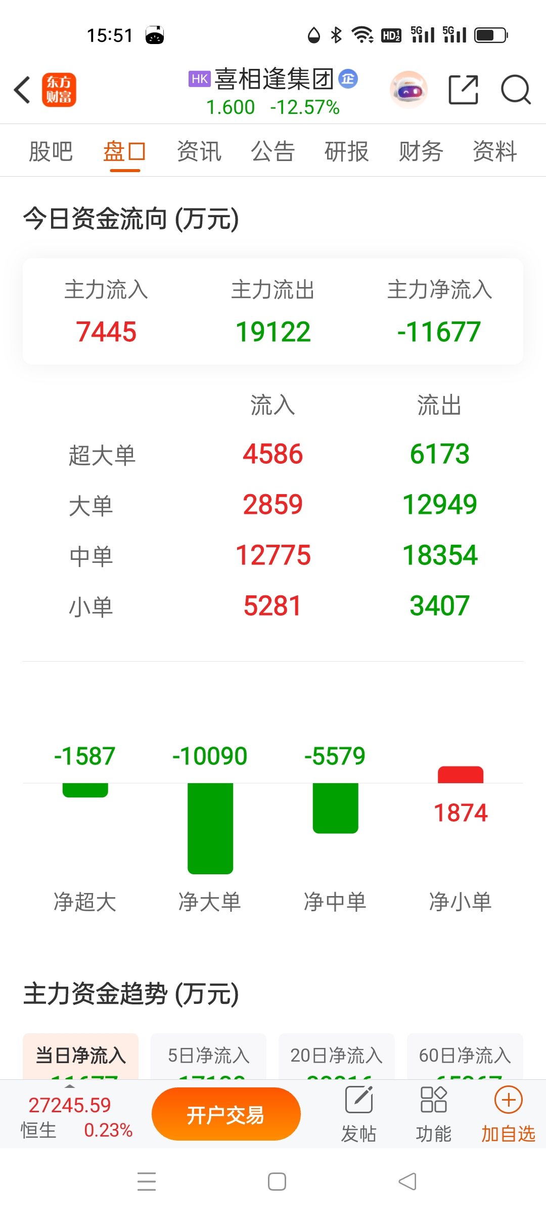 $喜相逢集团(HK|02473)$ 主力一天跑一亿多,估计1.1左右会反抽一下继续跌