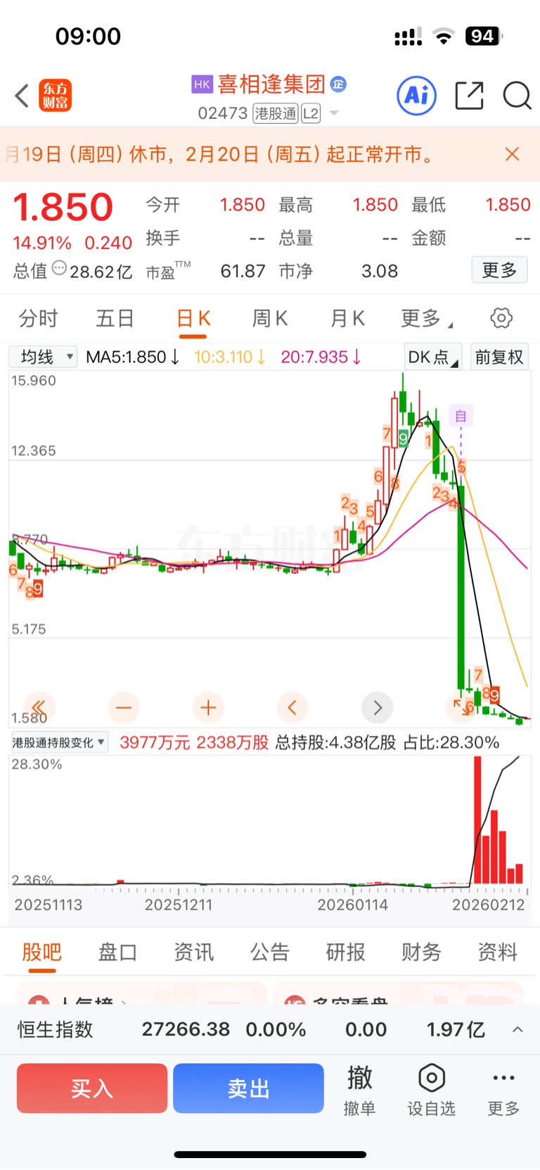 $喜相逢集团(HK|02473)$ 这几天买入的家人们厉害,抄到黄金铁底了,卖出的股东傻眼了!股东们集体卖飞了!