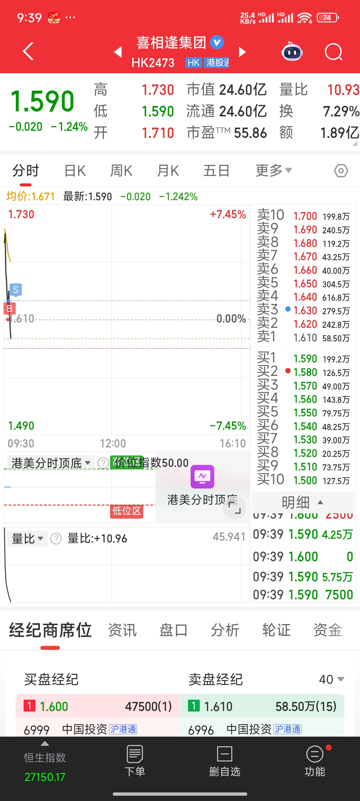 !!!一早挂的1.61没来得及撤单!感觉就不对!1.63抓紧跑了!