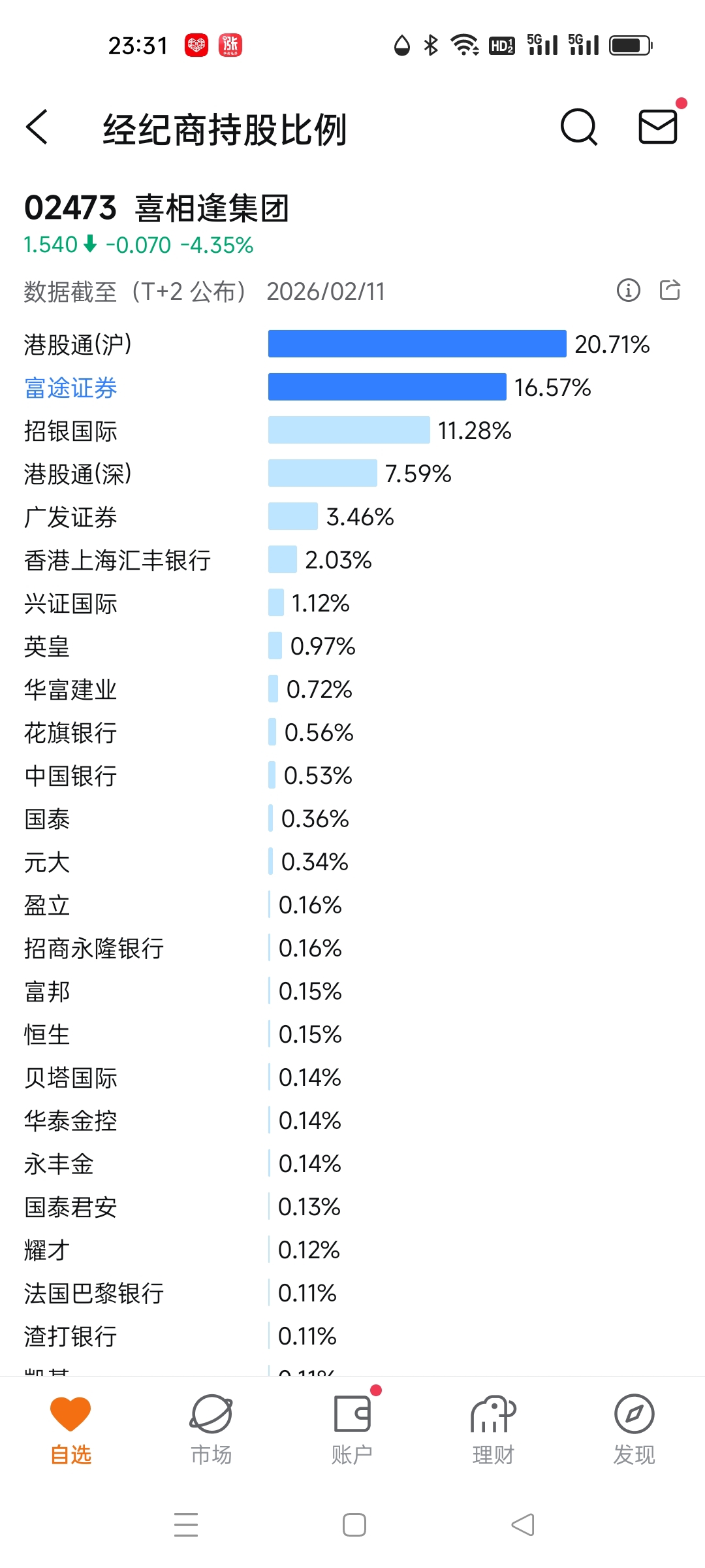 富途,招银,广发还有30%左右存货,等港股通占比50%会差不多到底了!