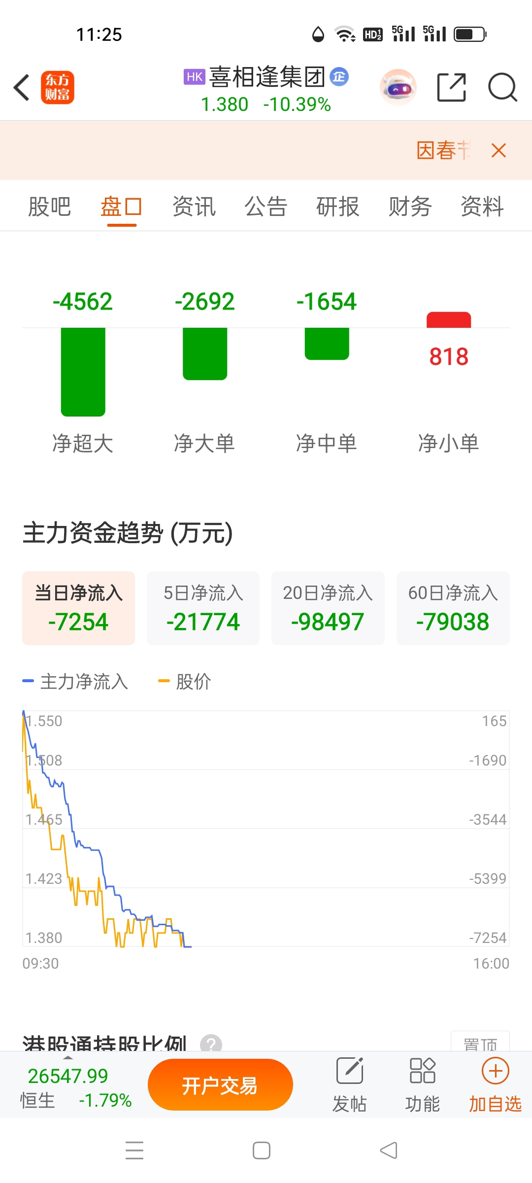 $喜相逢集团(HK|02473)$ 主力狂跑了,不带回头那种,这比昊天,山高,鼎丰,马克都狠