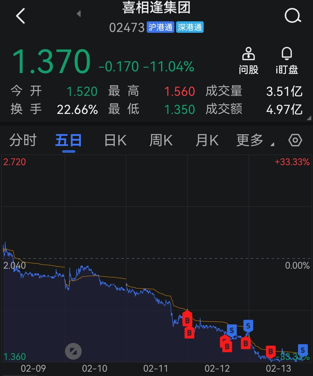 $喜相逢集团(HK|02473)$ 割了,亏了10个点,千股不值得,回君安和英诺
