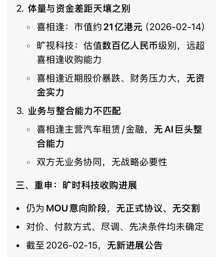 喜相逢收购旷时科技,完全不可能,十亿市值想收购几百亿市值怎么可能呢,是谣言,喜相