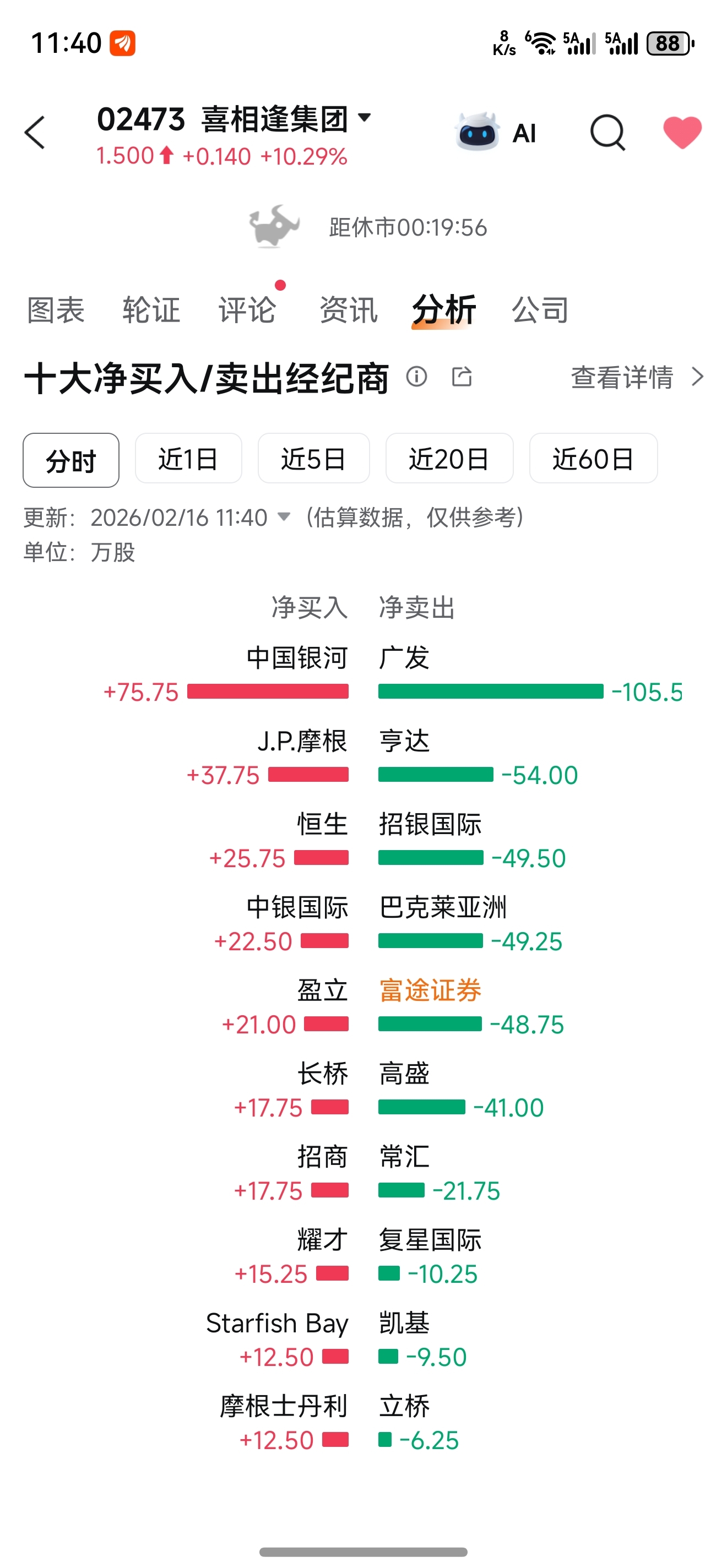 $喜相逢集团(HK|02473)$ 富途买回来了 兄弟们