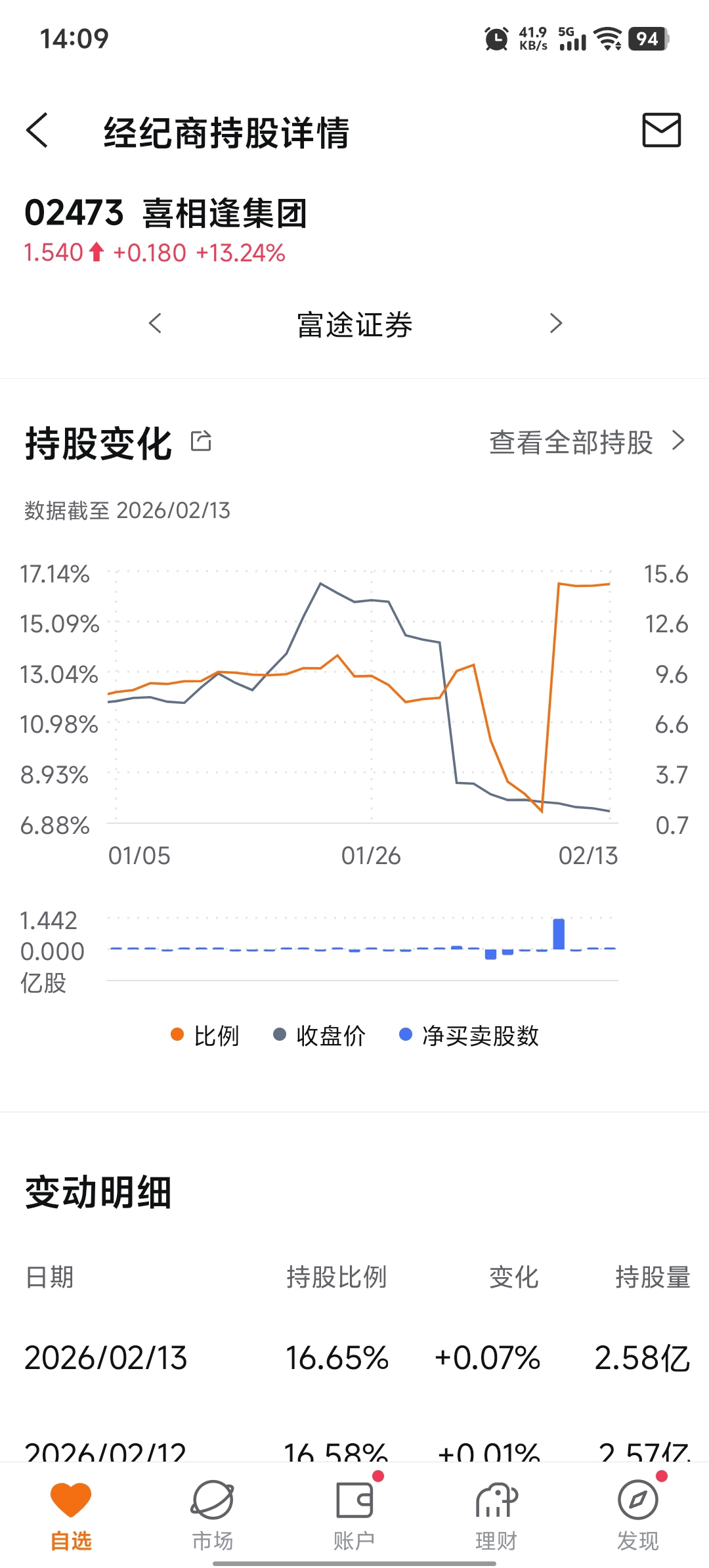 $喜相逢集团(HK|02473)$ 我说啥了,富途根本就没减少,他就是黄伟用自己的票左右手倒砸盘,所以才不会有大股东减持公告!