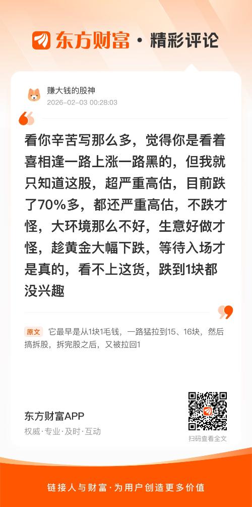 温馨提示: 1.根据《证券法》规定,禁止编造、传播虚假信息或者误导性信息,扰乱证券市场;2.用户在本社区发表的所有资料、言论等仅代表个人观点,与本网站立场无关,不对您构成任何投资建议。用户应基于自己的独立判断,自行决定证券投资并承担相应风险。《东方财富社区管理规定》