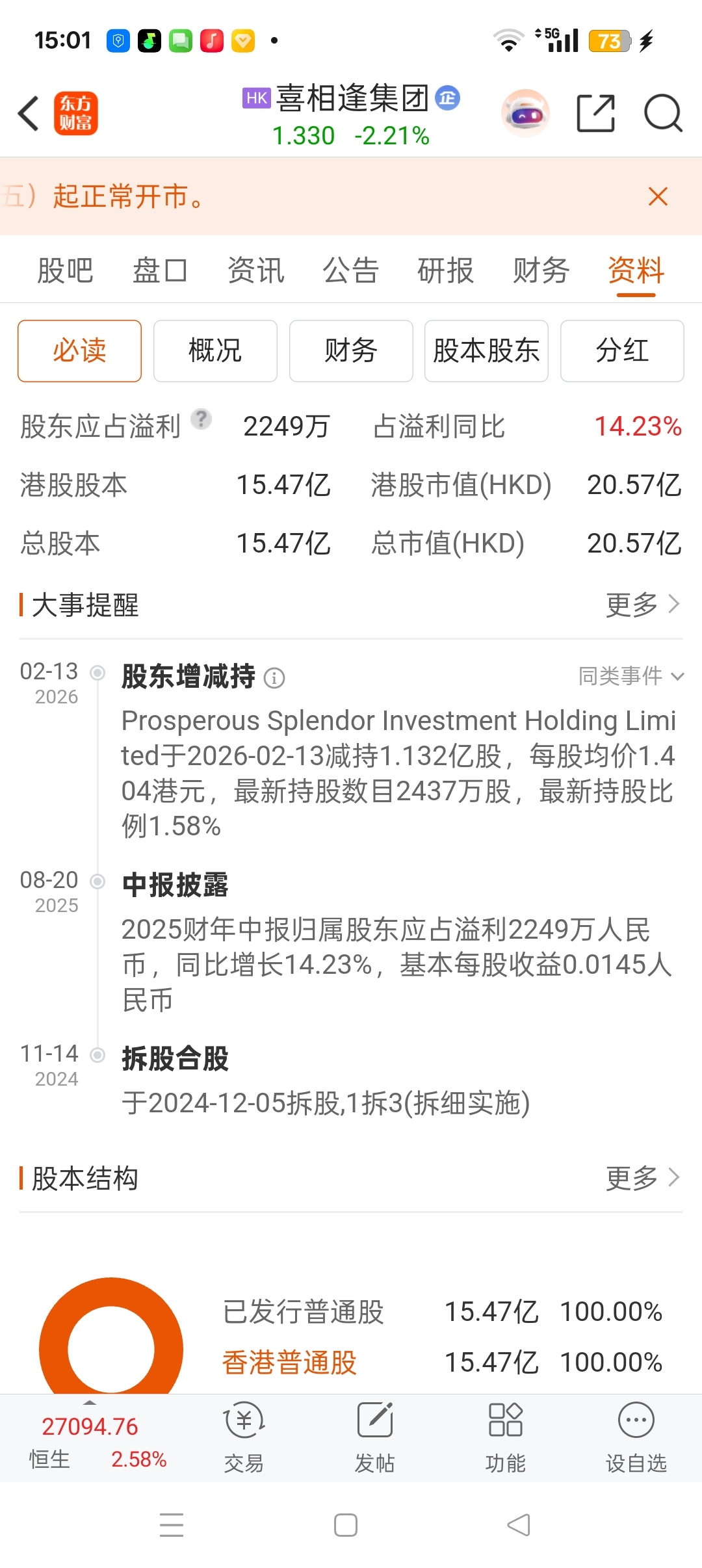 $喜相逢集团(HK|02473)$ $喜相逢集团(HK|02473)$ 股价都跌成这样了,股东还减持,这还能不能买,