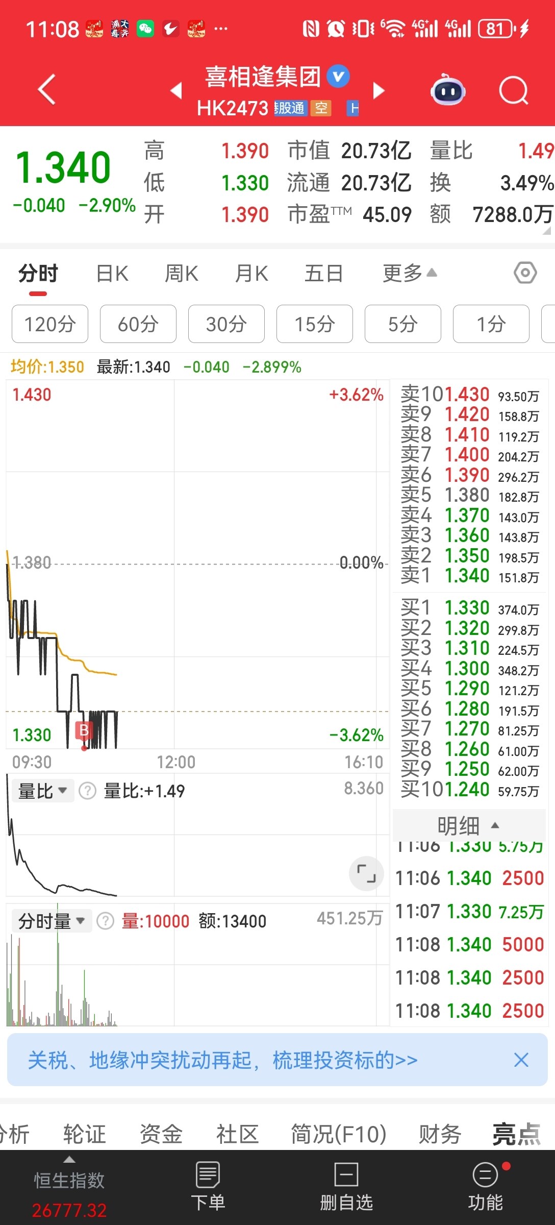 $喜相逢集团(HK|02473)$ 跑步进厂,今天主动买套了