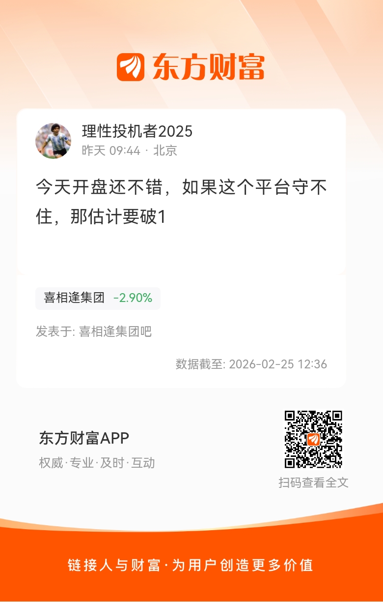 温馨提示: 1.根据《证券法》规定,禁止编造、传播虚假信息或者误导性信息,扰乱证券市场;2.用户在本社区发表的所有资料、言论等仅代表个人观点,与本网站立场无关,不对您构成任何投资建议。用户应基于自己的独立判断,自行决定证券投资并承担相应风险。《东方财富社区管理规定》