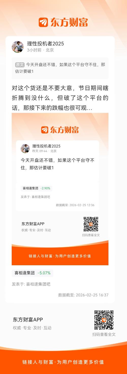 温馨提示: 1.根据《证券法》规定,禁止编造、传播虚假信息或者误导性信息,扰乱证券市场;2.用户在本社区发表的所有资料、言论等仅代表个人观点,与本网站立场无关,不对您构成任何投资建议。用户应基于自己的独立判断,自行决定证券投资并承担相应风险。《东方财富社区管理规定》