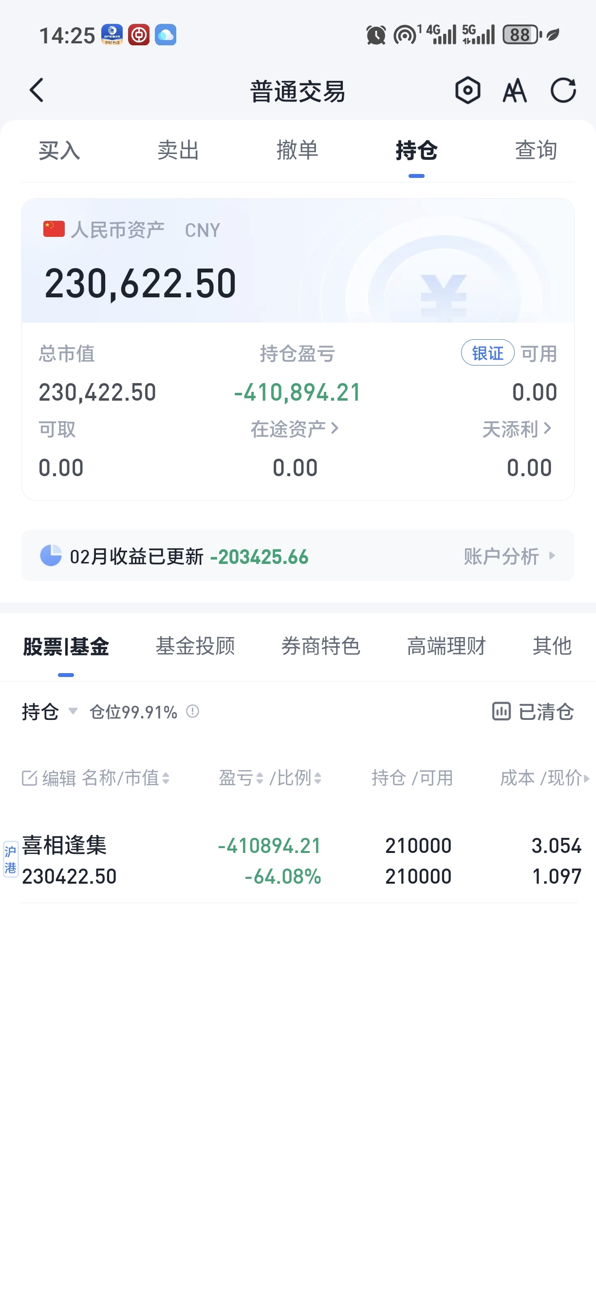 没钱了,又补了一万股,等三月份退税几万到了继续补仓。