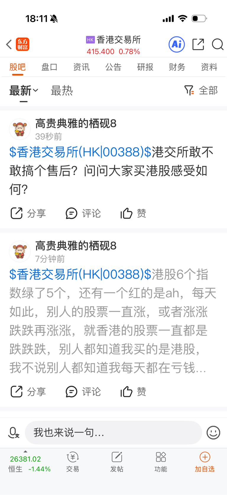 大家都去港交所留个言,说说买港股感受如何?先说一下我自始至终没有买喜相逢,我只是