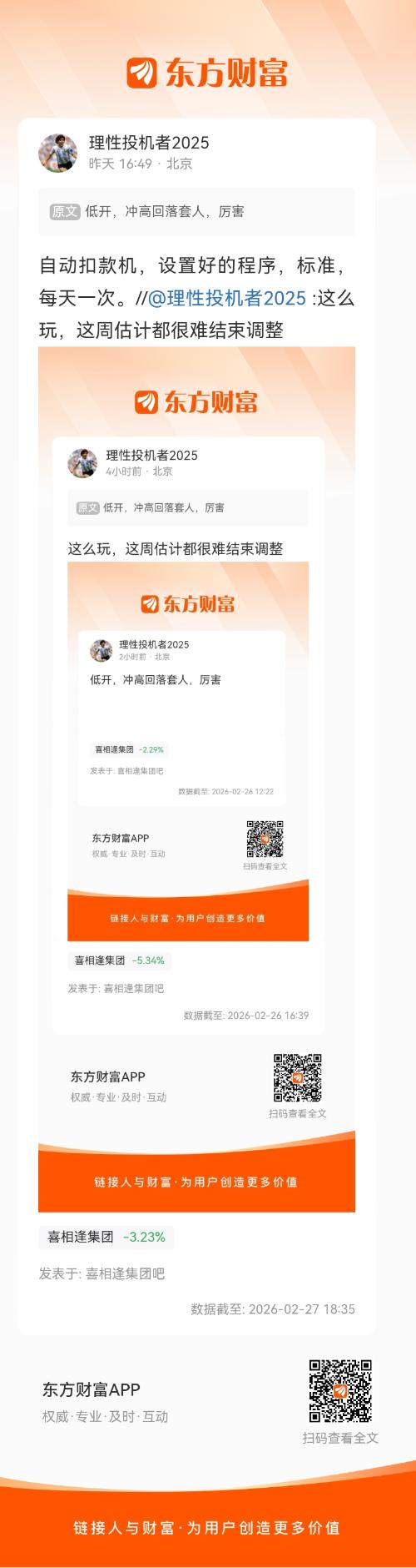 正常扣款,运行良好看基本面,找所谓的利好,都是扯淡。到目前为止,一个低点最长都撑不过三天,下跌趋势这么明显,怎么涨?//@理性投机者2025 :自动扣款机,设置好的程序,标准,每天一次。//@理性投机者2025 :这么玩,这周估计都很难结束调整