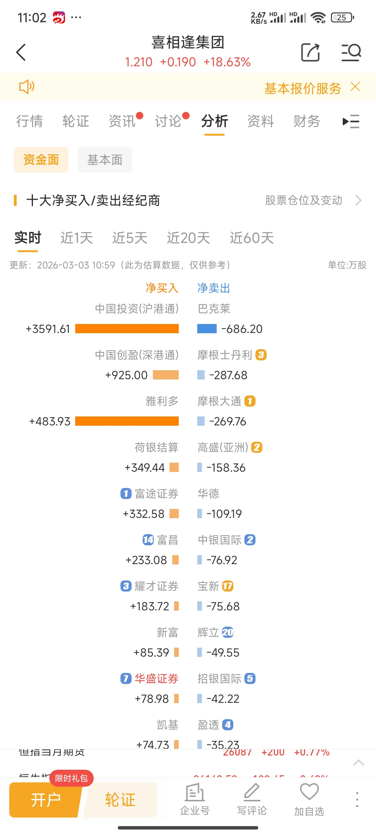跟狮腾不一样,狮腾反转那天港股通卖了4000万股,外资接4000万,今天喜相逢是