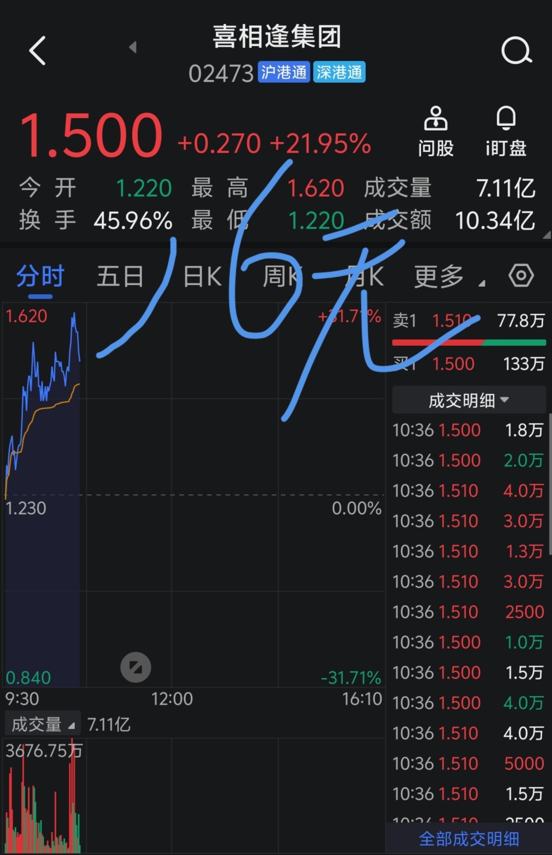 才刚刚开始,有些家伙就没耐心了。不过也好,主力后面极端暴涨拉起来更轻松。全球资本涌入香港。行情才刚刚开始,你们却在启动前捡了点芝麻就跑了。最起码到8元以上翻倍利润的耐心都没有。没耐心的家伙一出,主力又是瞬间暴涨一路往上勐拉到3元,6元.8元——10元。过了10元直奔20元歇息歇息。