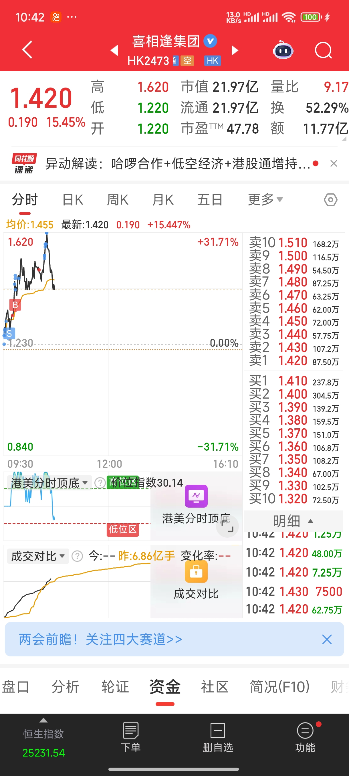 $喜相逢集团(HK|02473)$ 这次破1不敢抄底!最大的失误,其实0.97抄底的2万股,1块卖飞,就该追回来的!今天费力T来T去,终于把亏损的钱赚回来了!累死了!券商今天赚大了,总成交额快1000万了!